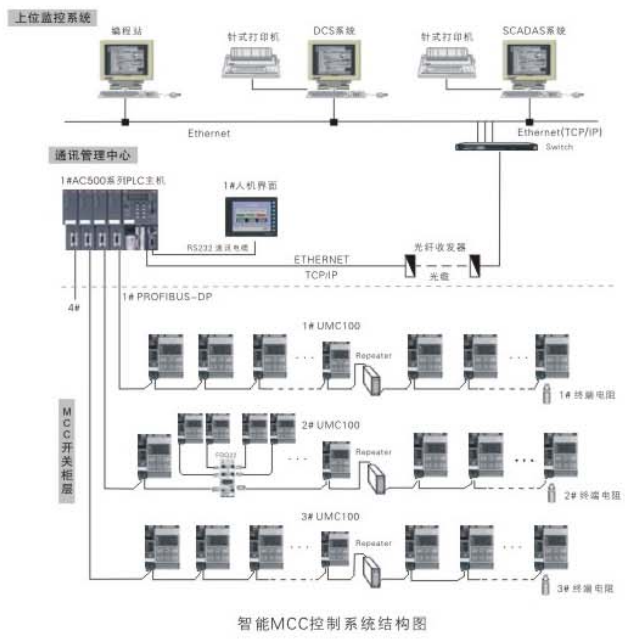 低压智能电动机控制中心(IMCC系统)由三个网络层构成: